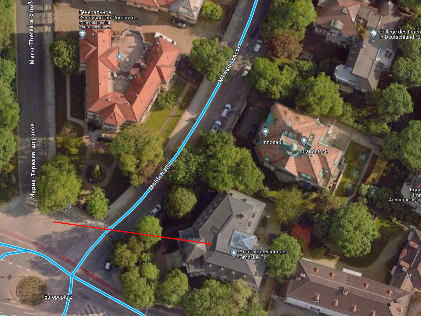 Четырехэтажная вилла в стиле модерн на Принцрегентенштрассе, 61 — один из самых величественных домов баварской столицы, площадью 1660 кв. м, обставленный итальянской мебелью, бронзовыми скульптурами и картинами, изображающими исторические сражения. Он был построен в 1903 году для принца Альфонса Баварского как представительная аристократическая резиденция. Позже в ней проживал первый в истории лауреат Нобелевской премии по физике Конрад Рентген, именем которого названо открытое им излучение. За удовольствие работать в этом доме Марсалек из денег Wirecard платил €680 тысяч в год. Одно из неоспоримых преимущество расположения этого офиса — он находился буквально через дорогу от генерального консульства России.