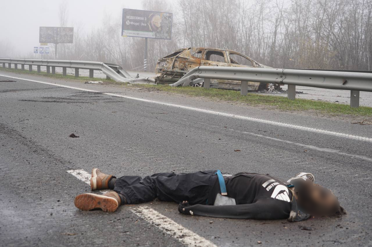 Людей, которые пытались выехать из Житомира в Киев, расстреливали и сжигали прямо на трассе. Фотографии убитых опубликовали украинские СМИ. Информацию The Insider подтвердил глава поселка Дмитровка Тарас Дидич. По его словам, российские военные убивали людей в 25 километрах от украинской столицы на границе сел Мила и Мрия по направлению из Житомира в Киев, где справа находится отельно-ресторанный комплекс «Бабушкин сад», а слева — заправки. Это подтверждается сверкой фотографий, сделанных после убийств, и фото этой местности на Google-картах. Дидич сообщил The Insider, что обнаружено не менее 29 тел.