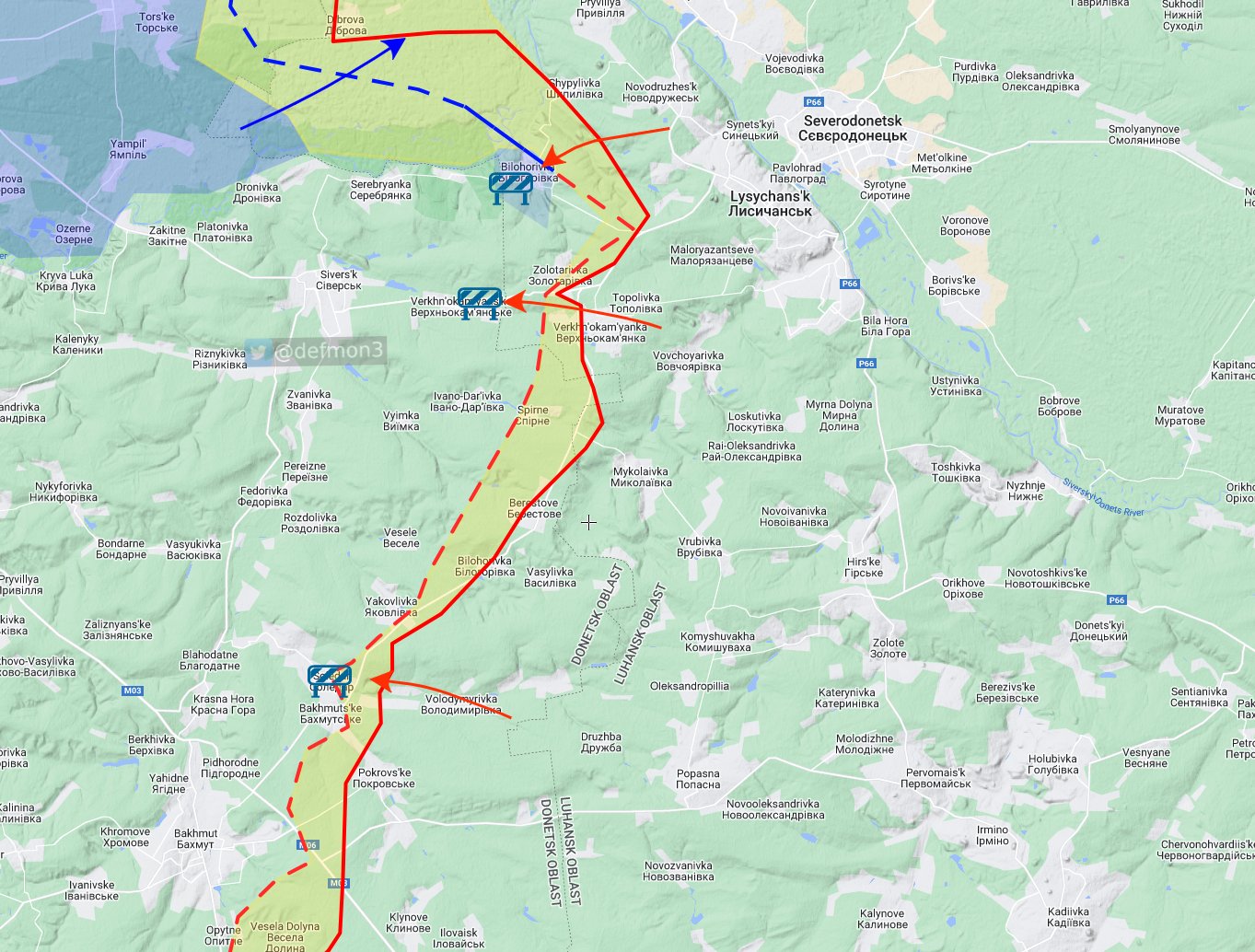 Наиболее напряженные бои идут на восточном фронте, в районе Бахмута и Авдеевки. Представитель Восточной группировки войск ВСУ Сергей Череватый утверждает, что российские военные несут «невероятные потери». За сутки они могут потерять от взвода до роты. Британская разведка предполагает, что Россия может перетянуть часть сил из Херсона для усиления наступления у Бахмута.