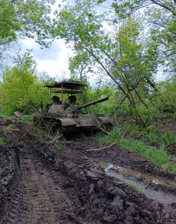Не менее любопытным выглядит решение, реализованное на одном из добравшихся до зоны боевых действий танков Т-55. По всей видимости, это первый известный пример тяжелой техники, оборудованной двойной решеткой, призванной защитить машину от сброса боеприпасов с дрона (так называемый «мангал»).