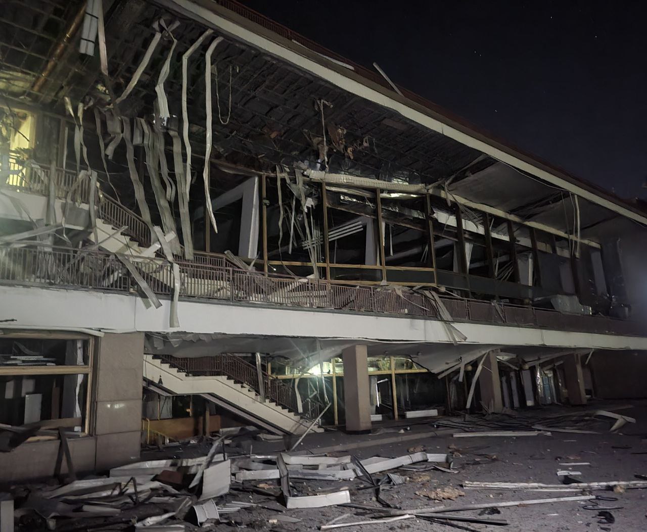 Украинский военный эксперт Андрей Тарасенко (автор Telegram-канала «Танки. История и современность. Btvt.info»), проживающий в Одессе, публикует видео пораженной гостиницы, где не видно никаких признаков присутствия военных, сопровождая его ехидным комментарием: