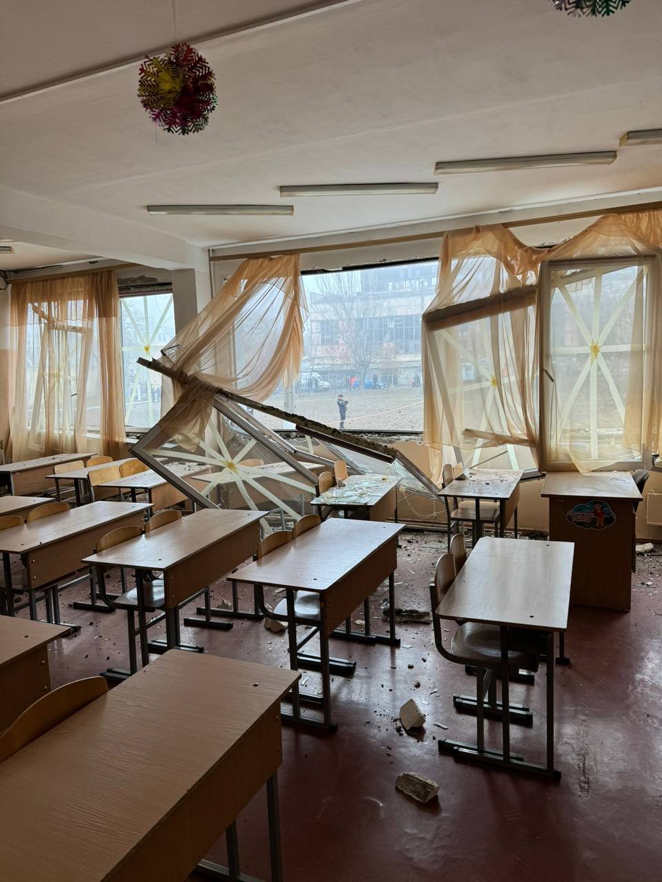 Также в городе в результате обстрела поврежден лицей. К счастью, детей в учебном заведении не было, они сейчас на каникулах.