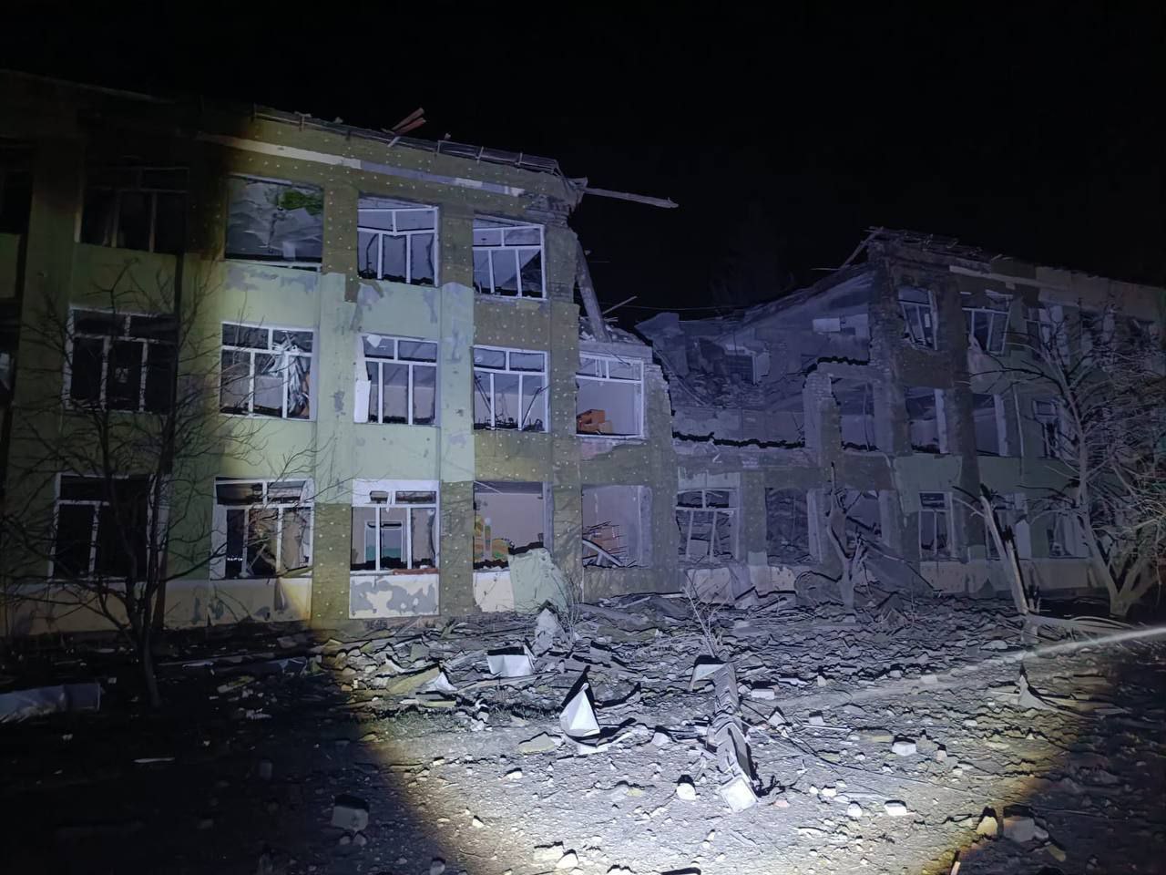 В поселке Боровая КАБ попала в здание школы, также повредив два гаража. По версии «военкора» Юрия Котенка, ранее в местных соцсетях называли здание этого учебного заведения пунктом временной дислокации ВСУ.