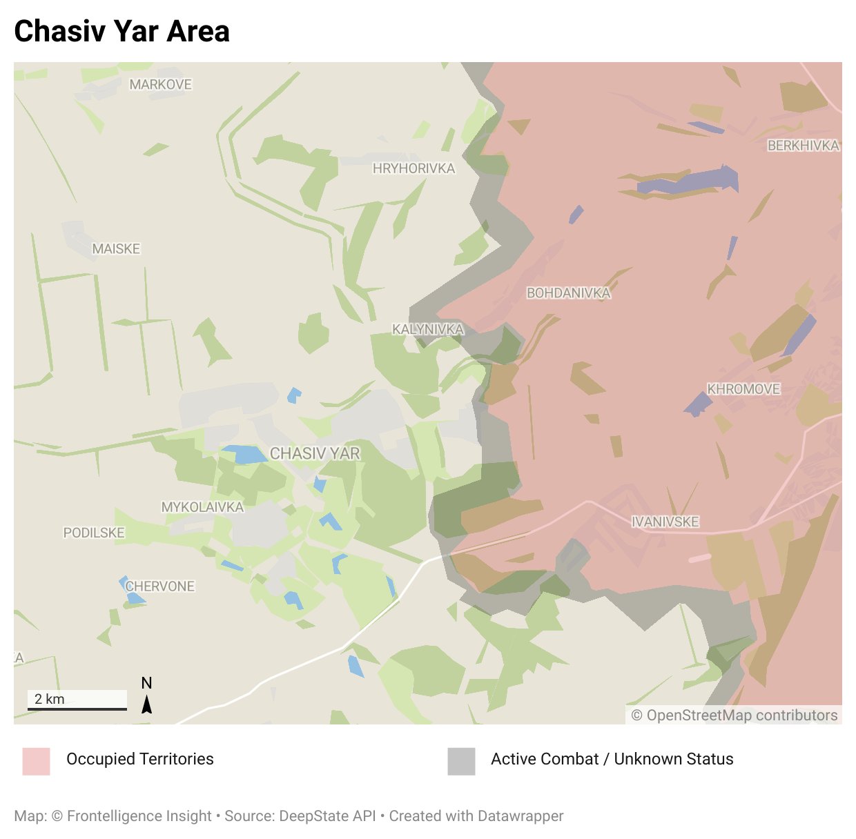 На краматорском направлении Машовец отмечает незначительное продвижение ВС РФ на восточных окраинах Часова Яра, а также около Клещеевки, Ивановского (до 2016 года — Красное) и Калиновки. Что касается покровского направления, то здесь после взятия Керамика, Новокалиново и Архангельского российские военные «забуксовали», и с получением ВСУ боеприпасов в рамках американской и европейской военной помощи им, возможно, придется отойти, так и не захватив Новоалександровку.