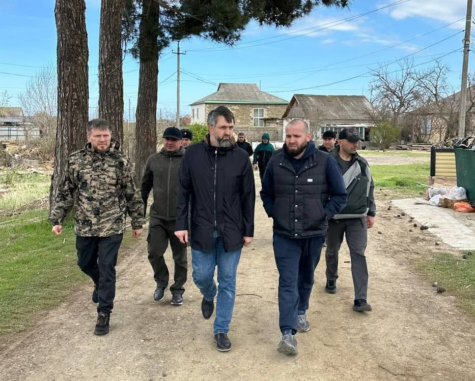 Полковником ФСБ Рамазанова называет и местный Telegram-канал «Новое дело». Местные паблики также публикуют (1, 2) фото Рамазанова, уже приехавшего инспектировать работы в поселке Мамедкале, в компании местных чиновников. О его визите, например, отчиталась администрация Дербентского района. На фото ниже он находится посередине.